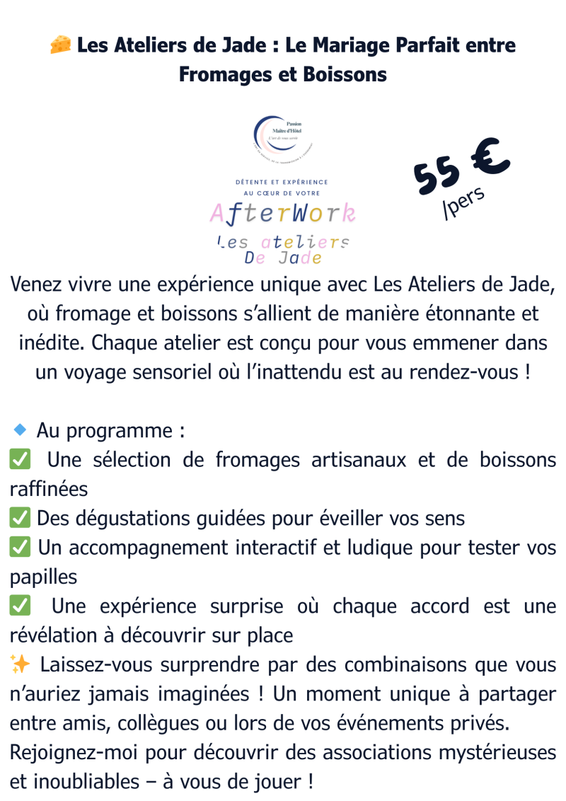 Ces accompagnements ajoutent une dimension ludique et sensorielle à vos ateliers fromages. Ils permettent de créer des associations variées et de découvrir de nouvelles saveurs. Que vous participiez à un atelier dédié aux bières, champagnes, vins ou thés, ces éléments viendront enrichir votre expérience gustative.