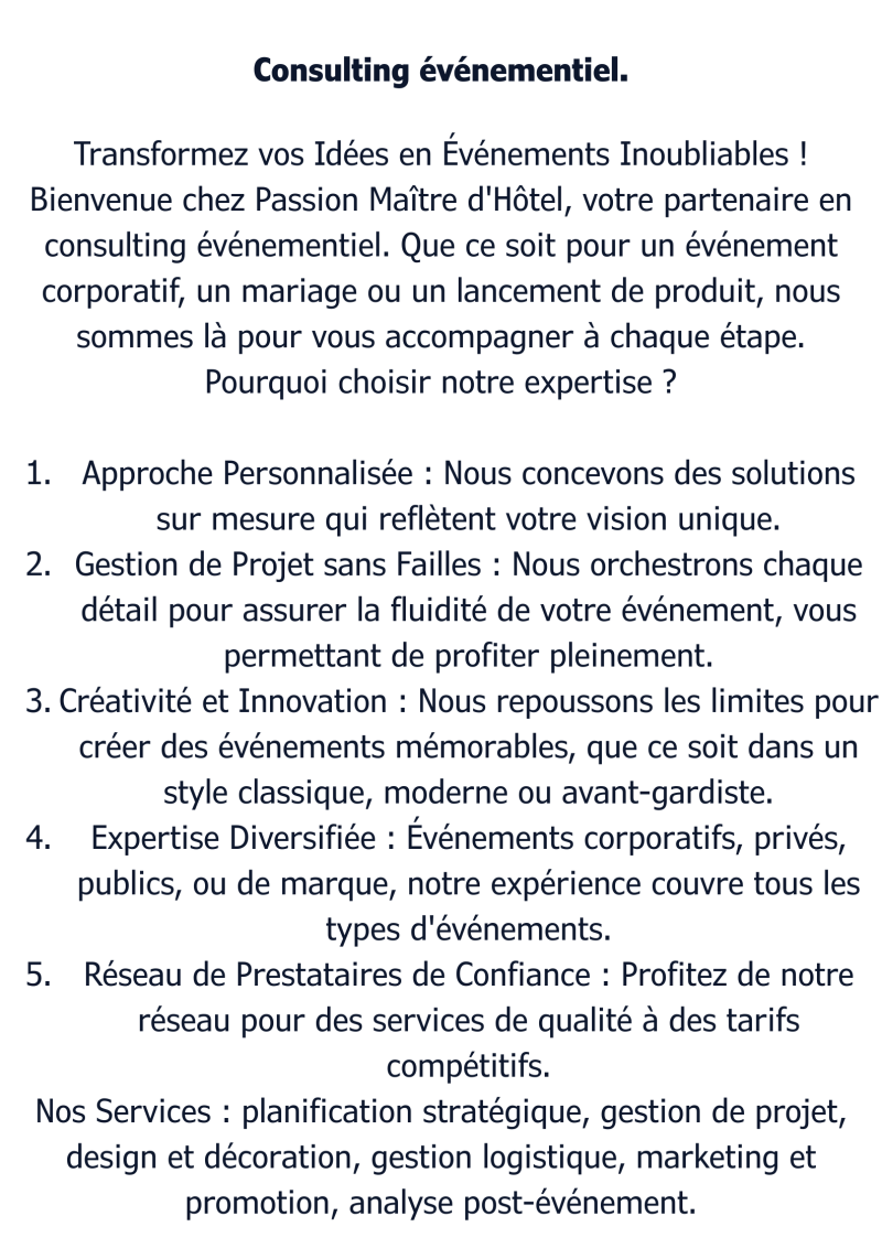 J'ai hâte de travailler avec vous pour créer des événements qui marquent les esprits et renforcent les liens.
