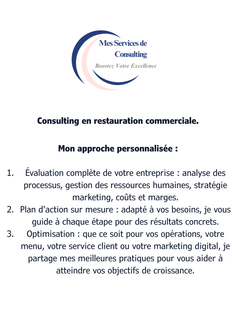 Vous êtes en création ou propriétaire d'un restaurant, et vous souhaitez améliorer votre performance opérationnelle, augmenter vos revenus et offrir une expérience exceptionnelle à vos clients ?
